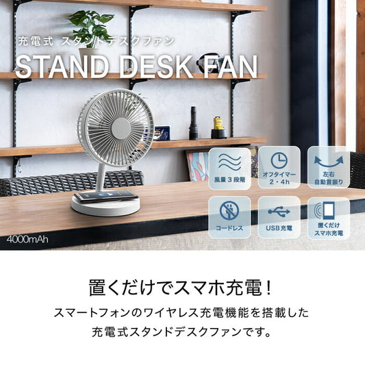充電式スタンドデスクファン 首振り&空気循環!タイマー付き卓上扇風機 熱中症対策に
