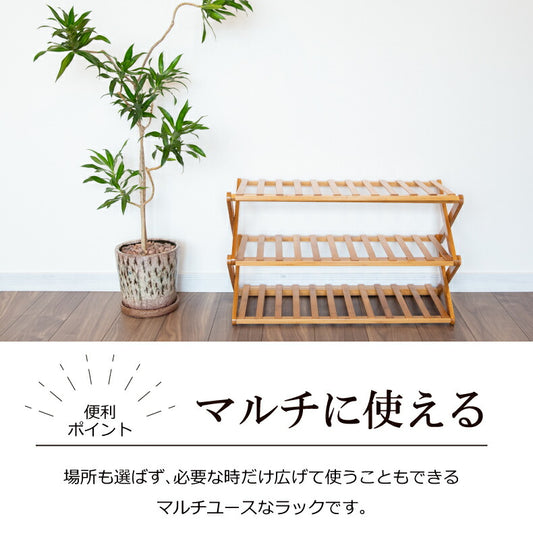 竹製折りたたみ3段マルチラック スリッパ収納 北欧風 玄関 キッチン収納 おしゃれ