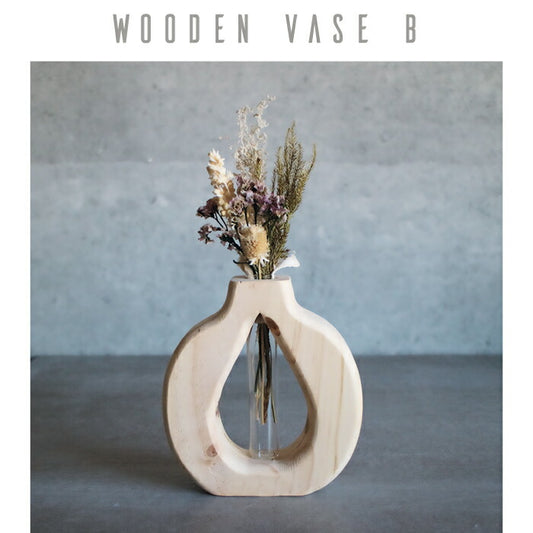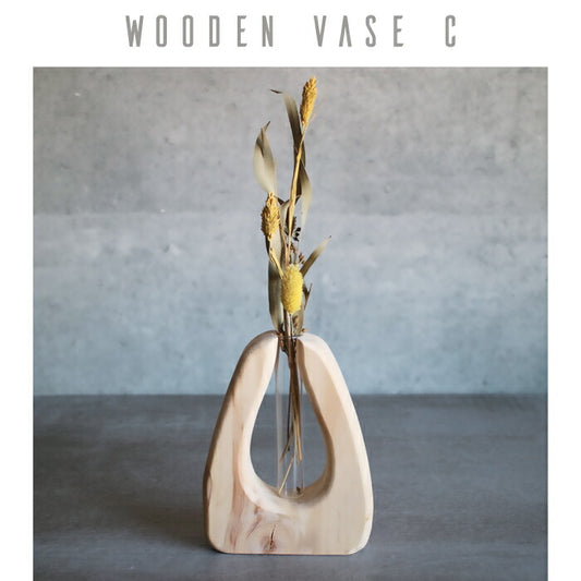 ナチュラルな木製フラワーベース C 一輪挿し ガラス 花瓶 北欧風 おしゃれ 卓上 ギフトにも