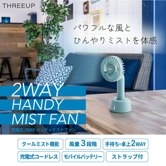 充電式2WAYハンディミストファン USB扇風機 ミスト機能付き 携帯用ポータブル冷風機