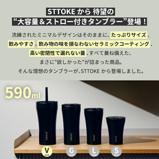 「STTOKE ステンレスタンブラー Vサイズ|590ml大容量・保温保冷・セラミックコート・ストロー&蓋付き・選べる特典付」