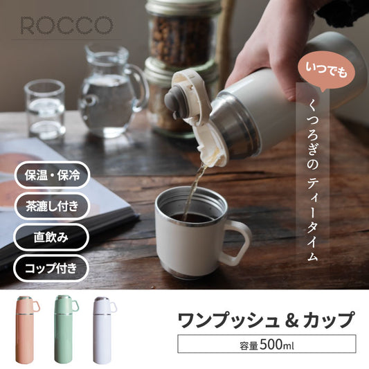 ワンタッチ式水筒 コップ付き 茶こし付 直飲み対応 500ml ROCCO