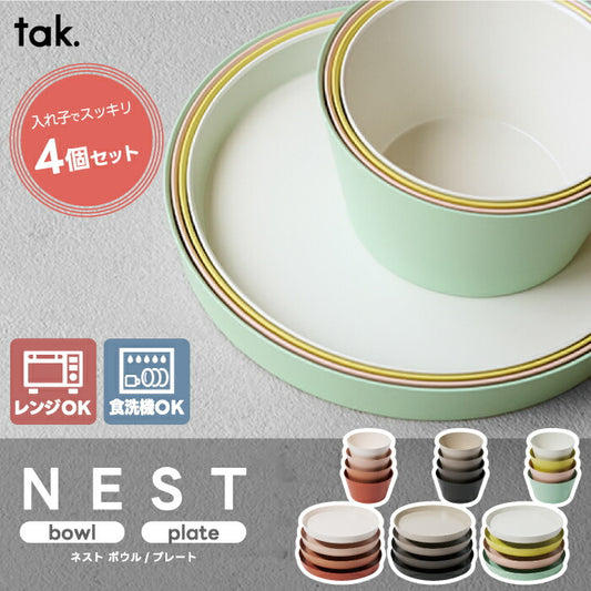 tak ネスト 食器4点セット 日本製 おしゃれで割れにくい 北欧風スタッキング皿