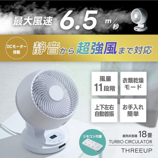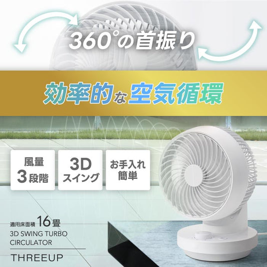 スリーアップ 3Dスイング ターボサーキュレーター 全方位首振り 強力送風 静音・省スペース設計 衣類乾燥・空気循環に最適