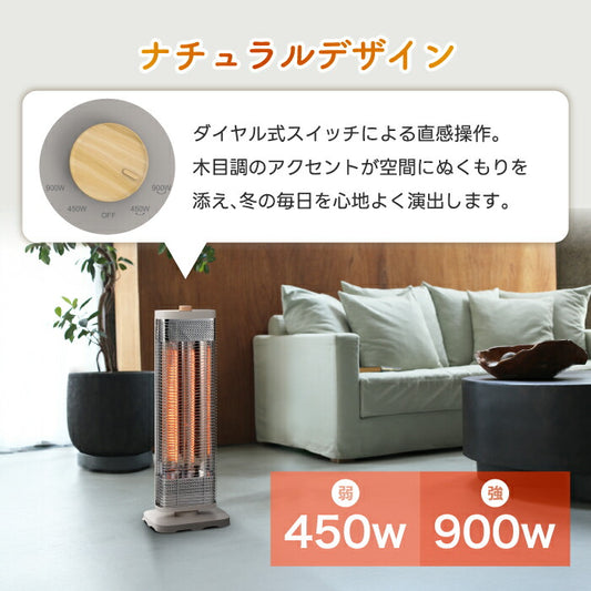 首振りスマートWカーボンヒーター 900W 速暖 省エネ 木目調 タワー型 静音 暖房器具 おしゃれ