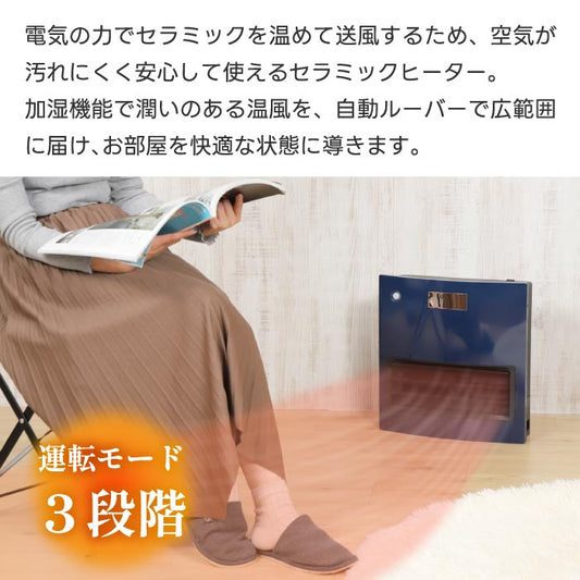 セラミックヒーター 加湿機能 大風量 人感・室温センサー 自動ルーバー ムービングヒートモイスト QUADS リモコン 省エネ 気化式 乾燥対策 2WAY 暖房器具 冬家電 ギフト