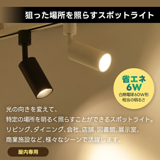 LED ダクトレール用スポットライト6個組|LED電球付き レールライト 電球色 天井照明に最適