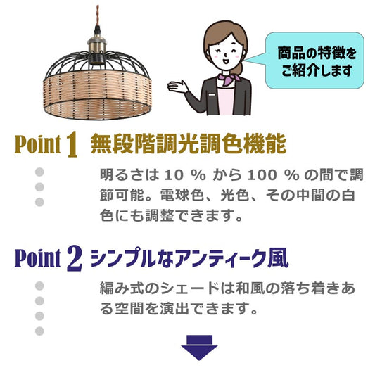 おしゃれ編み式ペンダントライト 直径25cm 調光調色LED・リモコン付 天井照明