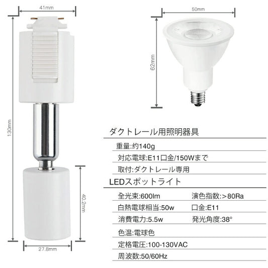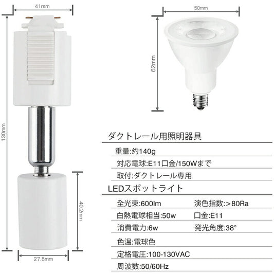LED 6灯 ダクトレール用スポットライト|E11口金 LED電球色付 レールライト 北欧風インテリア