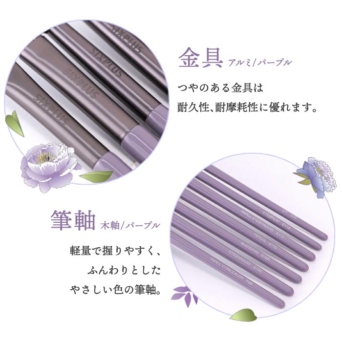 SIXPLUS ウィステリア メイクブラシ7本セット|紫ポーチ付き・ギフトに人気
