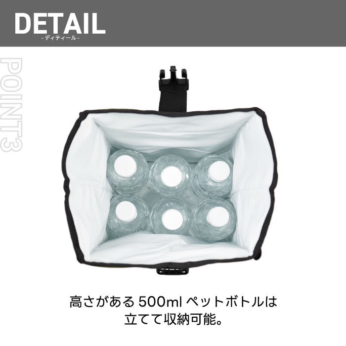 ・ お弁当+飲み物+保冷剤がちょうど入る、通勤・レジャーに最適なサイズ感。