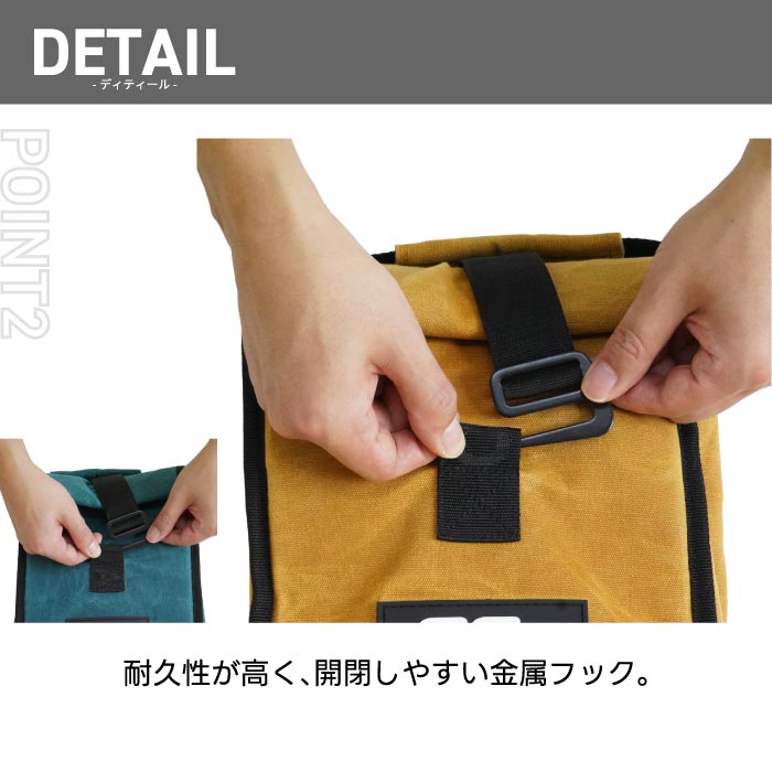 ・ 荷物の量に応じて高さ調節が可能なロールトップ構造。開閉も簡単でスムーズ。