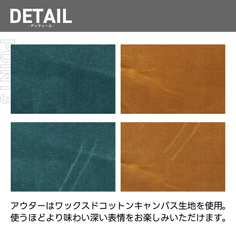 ・ 使うほどに風合いが増すワックスドコットンキャンバスを採用。経年変化を楽しめるタフでクラシックなデザイン。