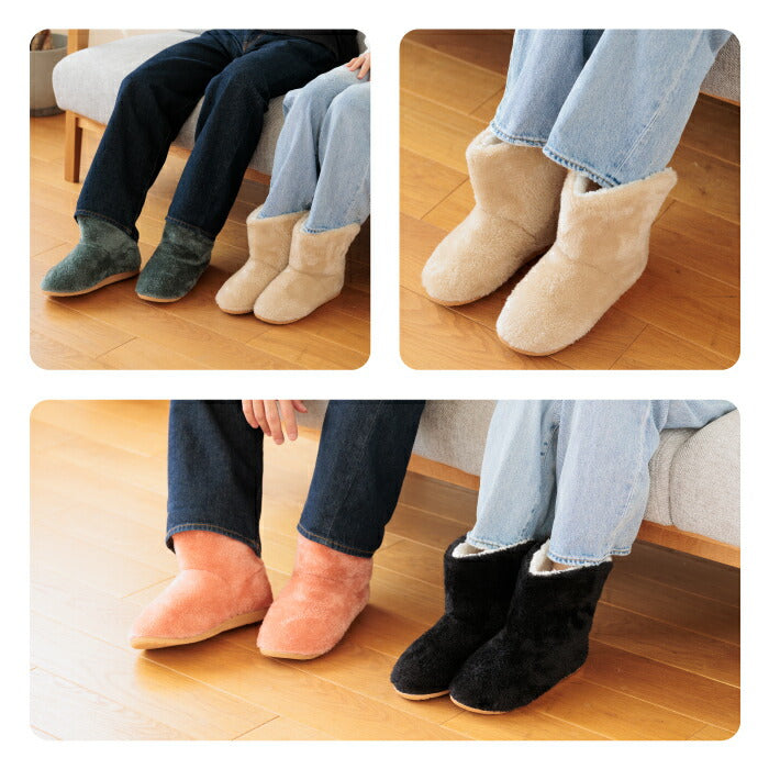 moz ボアルームブーツ|もこもこ2WAY仕様・洗える北欧デザインのあったかルームシューズ【防寒・滑り止め付】