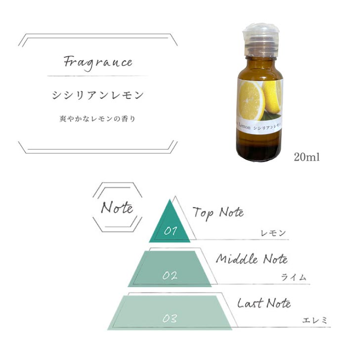カーアロマディフューザーオイル シシリアンレモン 20ml 癒し 爽やか リフレッシュ 気分転換 アロマオイル レモン ライム エレミ 調合香料 車用