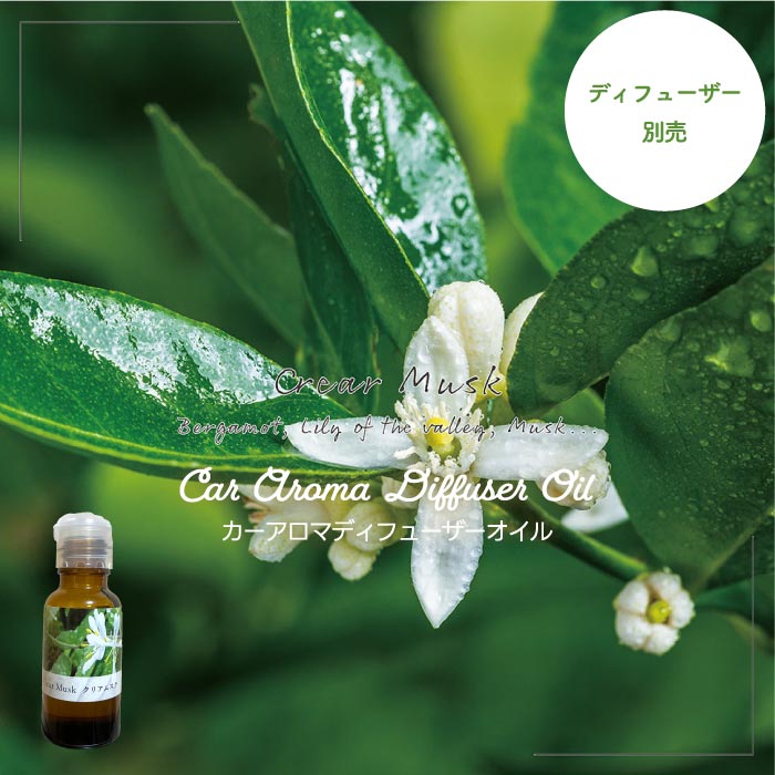 カーアロマディフューザーオイル クリアムスク 20ml 癒し 甘い ミント ムスク リフレッシュ 気分転換 アロマオイル ベルガモット スズラン 調合香料 車用