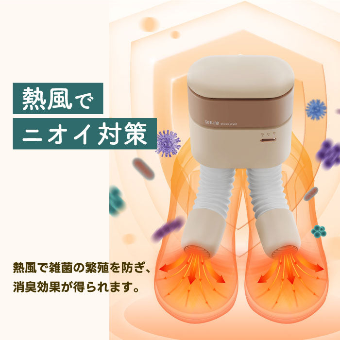 【タイマー付】sothing 熱風靴乾燥機 消臭・除菌対応 小型シューズドライヤー 梅雨・雪対策に