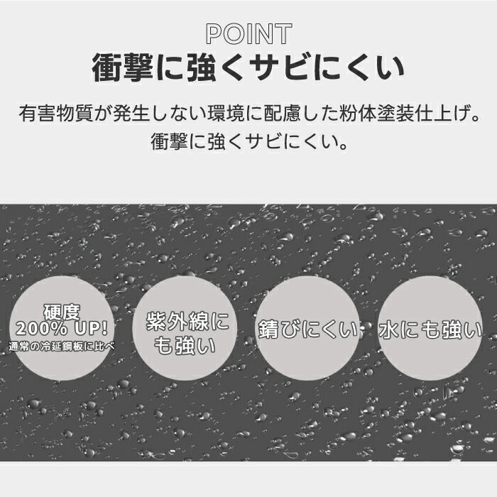 素材はスチール板を採用、紫外線にも強く錆びにくいです。水にも強い仕様です。