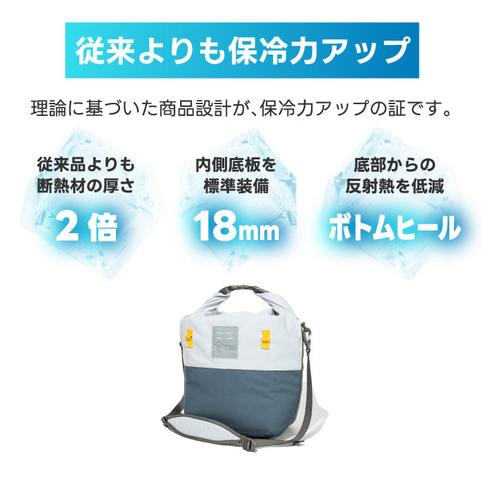 ・ 従来品より断熱材が2倍厚く、18mm厚の底板&ボトムヒール付きで底面からの冷気ロスを軽減。