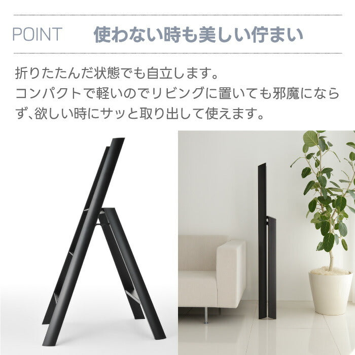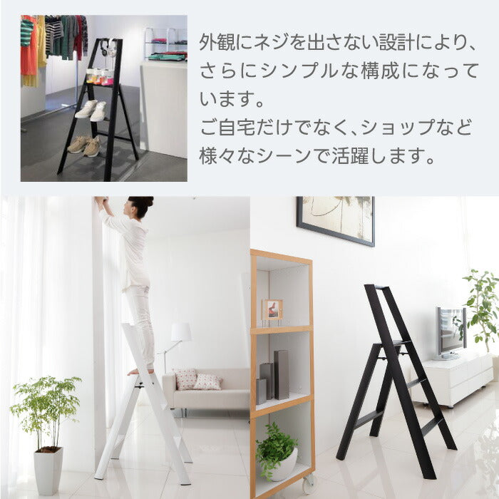 ルカーノの3段脚立は、美しいデザインと安全性を追求したアイテムで、手すり付きで昇降をより安全に行えます。コンセプトを継承しながら機能性を進化させたこのモデルは、家庭や店舗での多様な用途に対応。脚立が美しいインテリアの一部としても機能し、自立するため使わない時でも部屋の雰囲気を損ないません。SGマーク取得による高い安全基準を満たし、持ち手は女性や子供でも握りやすく、滑りにくい処理が施されています。ワンタッチバー機能で簡単に開閉でき、トレンドカラーの新色も追加され、どの空間にもマッチするデザインです。家具としても優れたルカーノ脚立で、安全かつスタイリッシュに高所作業を楽しみましょう。