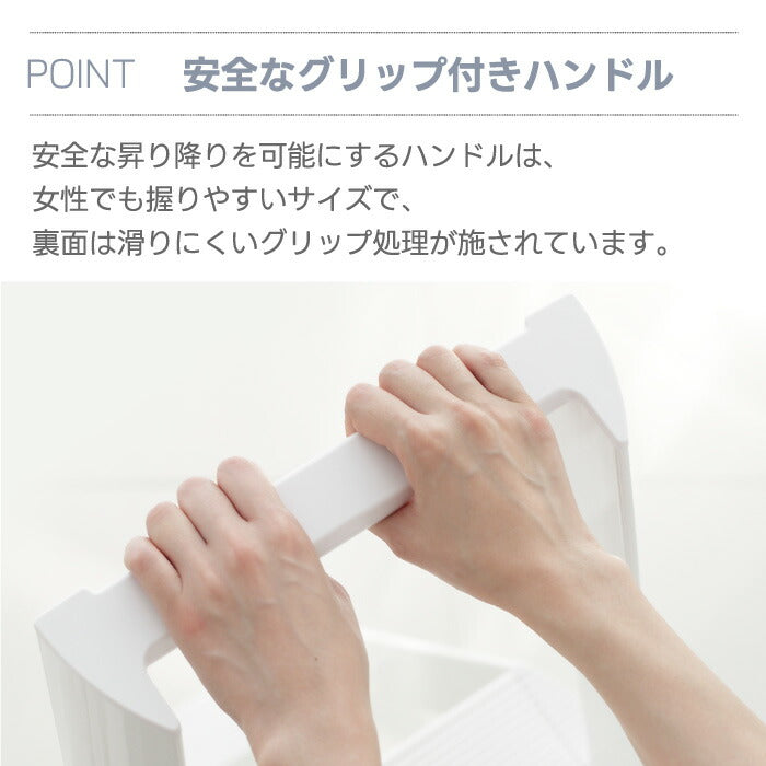 ●安全な昇り降りを可能にするハンドルは、女性でも握りやすいサイズで、裏面は滑りにくいグリップ処理になっています。