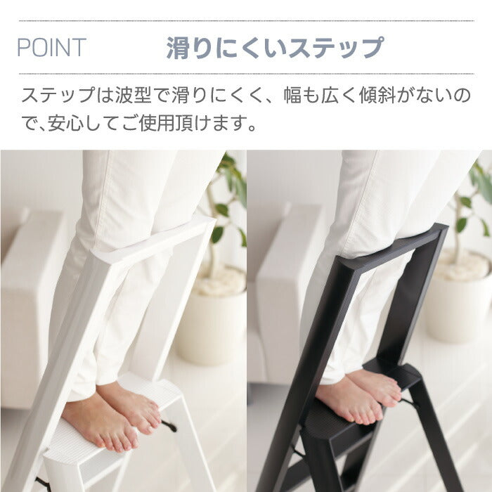 ●ステップは波型で滑りにくく、幅も広く傾斜がないので、安心してご使用頂けます。