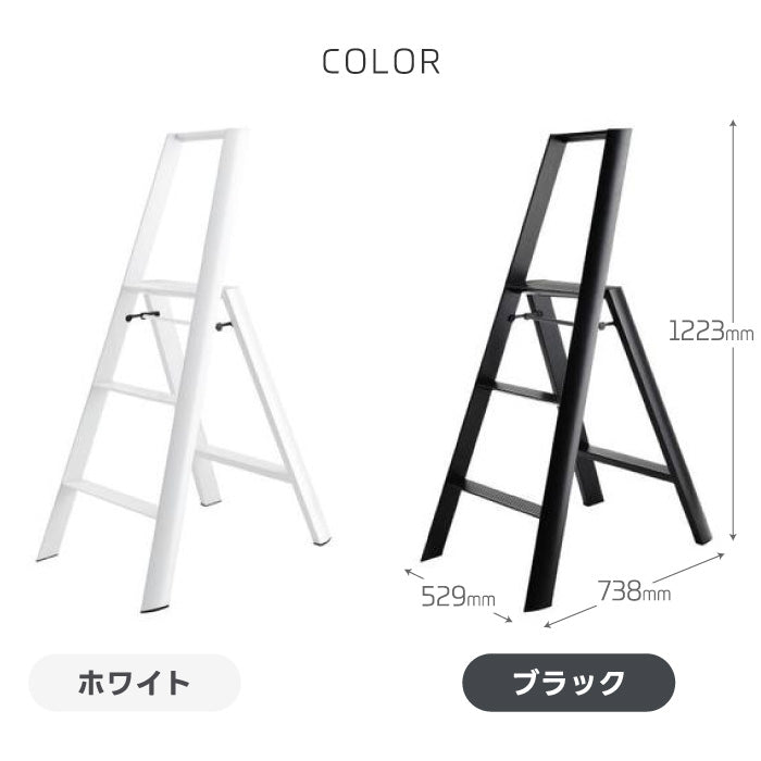 ルカーノ 脚立 3段 手すり付き 折りたたみ式 踏み台 おしゃれ 自立式