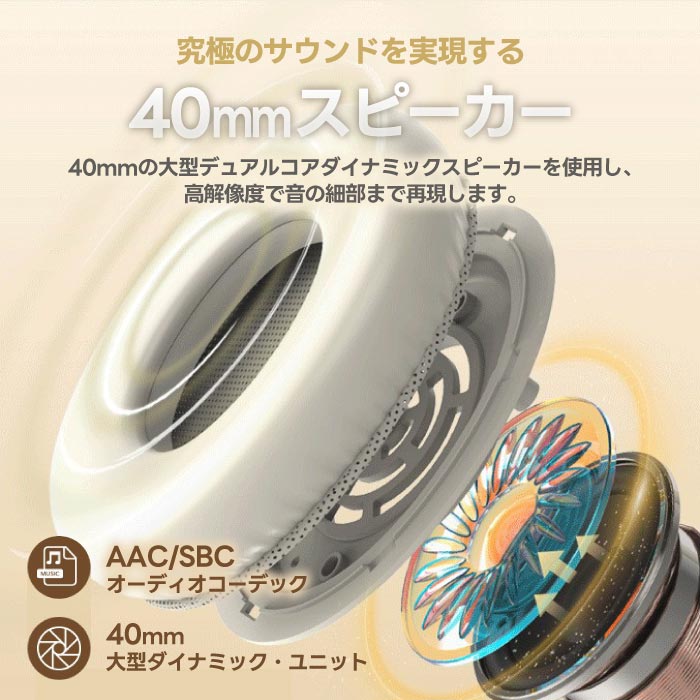 【クリアなサウンド】40mmの大型デュアルコアダイナミックスピーカーを搭載し、高解像度で細部までクリアに再現。深みのある低音とクリアな高音が、音楽の魅力を引き出します。