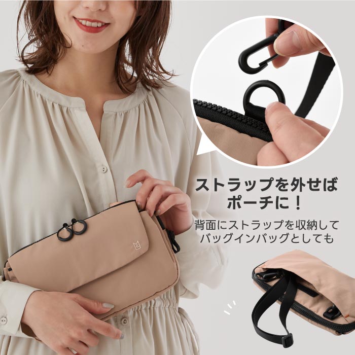 ・ 取り外し可能なショルダーストラップで、バッグインバッグとしても◎