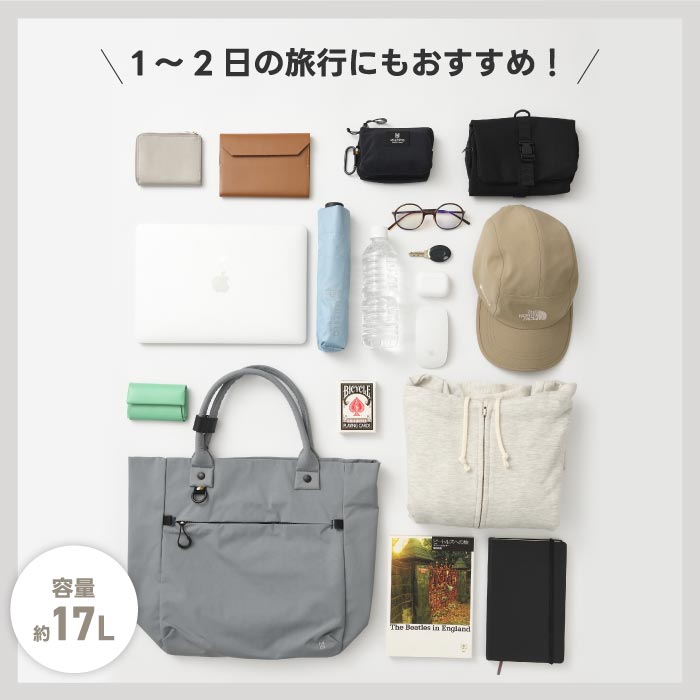 TROTのトートバッグは、ビジネスにもカジュアルにも合う万能デザイン。 軽量ながら17Lの収納力を持ち、13インチPCもすっきり収まります。 撥水素材で天候を選ばず、キャリーオン対応で出張にも便利。 シンプルなのに機能的で、毎日の相棒にぴったりのバッグです。