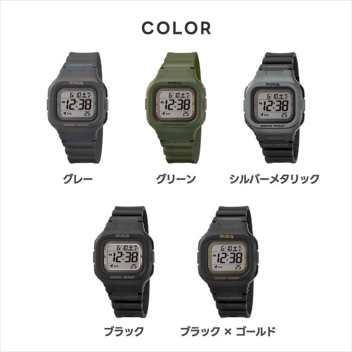 日々の生活をスマートに彩るMAG ウェーブフォースの電波ソーラーウォッチ。ソーラー充電とリチウム電池のデュアルパワーでエコと実用性を兼ね備え、10気圧防水性能で日常のあらゆるシーンに対応。報時機能や12/24時間表示切替、ストップウォッチ、カウントダウンタイマー、そして光が届かない場所でも役立つライト機能を搭載。コンパクトなデザインは老若男女問わず、どんなスタイルにもマッチし、電波時計機能により常に正確な時刻を提供。スポーツから日常使いまで、どんな場面でも活躍する多機能な腕時計です。新生活のギフトや自分へのご褒美にも最適な一品。