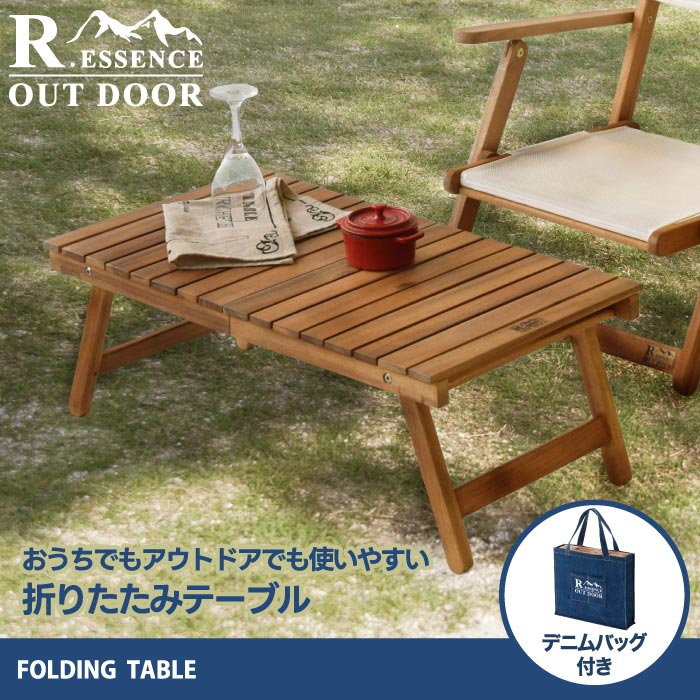 アカシア天然木 折りたたみローテーブル 高さ28cm 軽量アウトドア用トート付