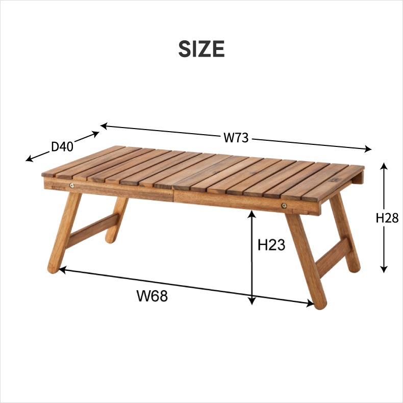 ・ 高さ28cmで地面に近いロースタイル。チェアなしでも快適に使用可能。