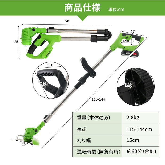 充電式草刈り機 超軽量コードレス 折りたたみ式 大容量バッテリー2個付