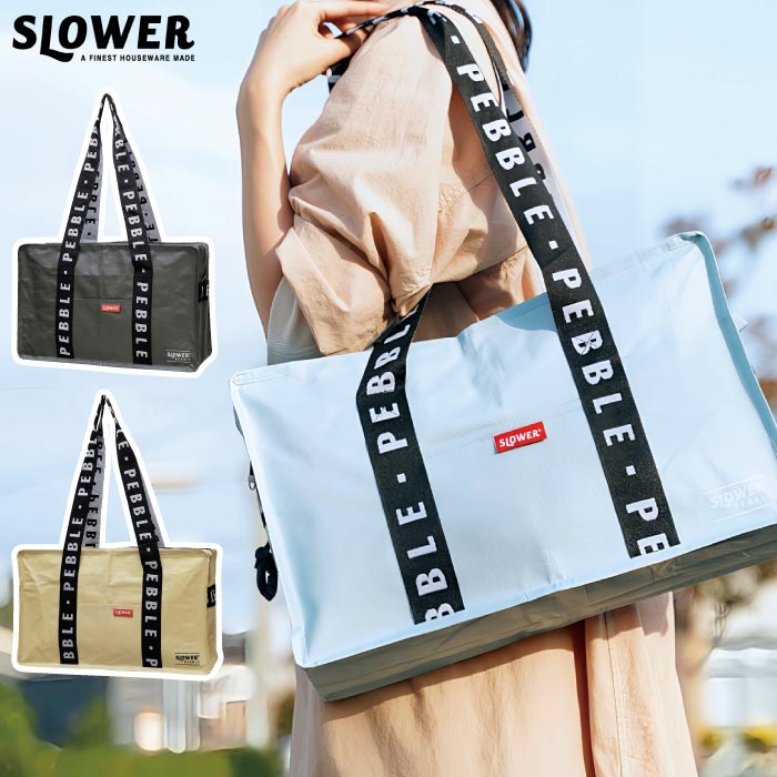 slower トートバッグ 14L 大容量 軽量 折り畳み可 エコバッグ ペブル柄 キャリーオン対応 おしゃれ