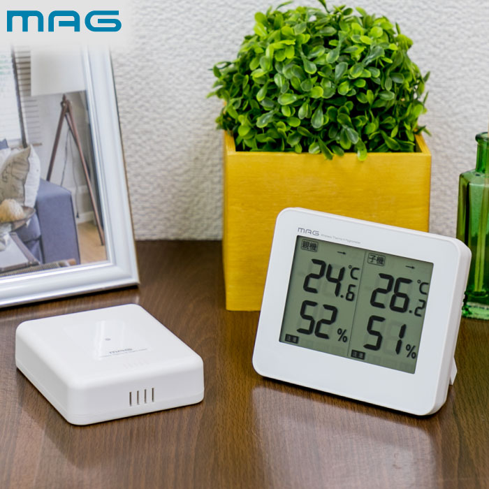 MAG デジタル温湿度計 ダブルエアー 親機+子機セット 2箇所測定 防水 卓上・壁掛け両用