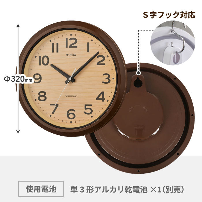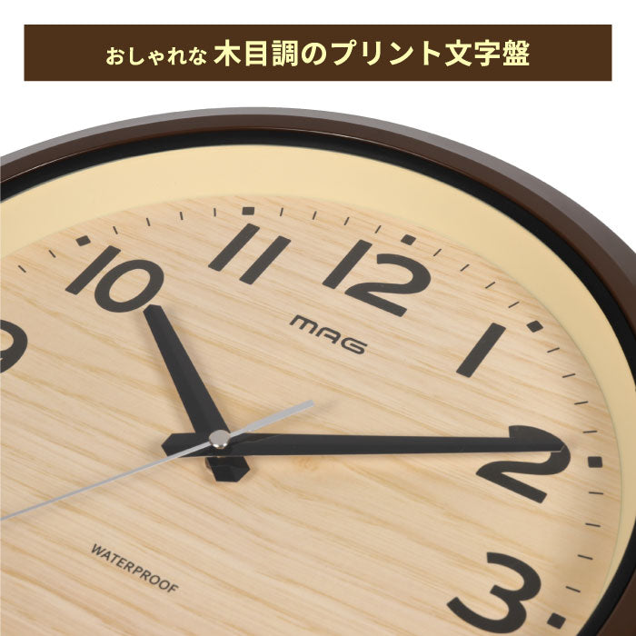 防水 壁掛け時計 MAG 木目調 防塵 アナログ おしゃれ 屋外・水回り対応