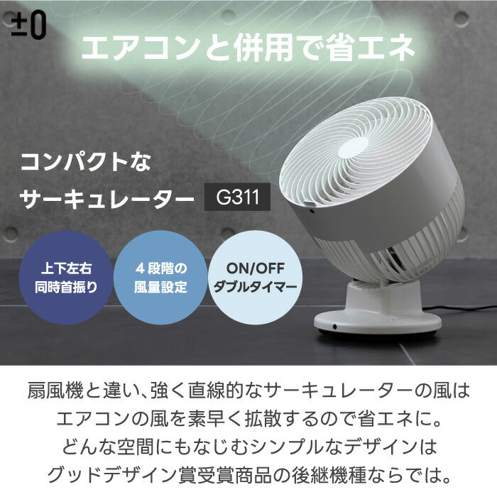 ±0 サーキュレーター G311 風量4段階 自動首振り 静音 衣類乾燥にも◎