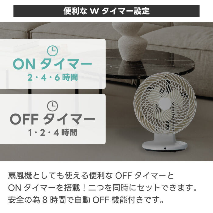 ・ 微風〜強風まで4段階の風量調整が可能。ON/OFFタイマーで就寝中や外出時も安心。